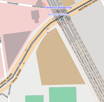 Geografische Punkte und Wege aus OpenStreetmap in der Nähe von ``Bahnhof Frankfurt-Niederrad´´
