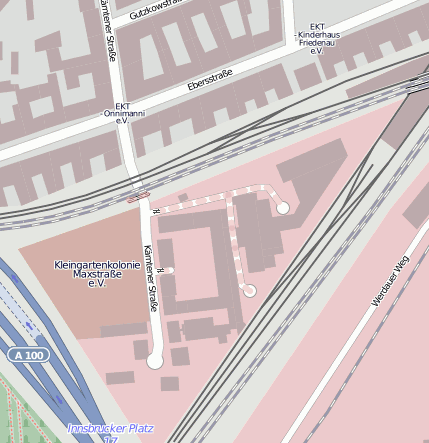 Geografische Punkte und Wege aus OpenStreetmap in der Nähe von ``Berlin-Schöneberg (Vorortbahn)´´
