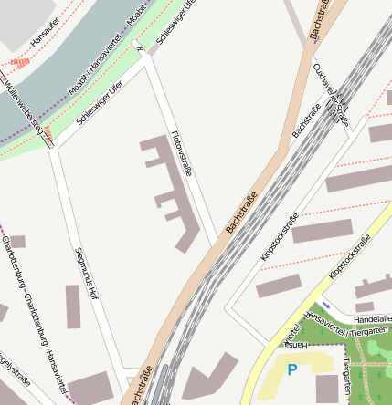 Gebäude: Neue Nationalgalerie Berlin (2.18km), Charité-Universitätsmedizin Berlin, Campus Virchow-Klinikum (2.81km), Berliner Moschee der Lahore-Ahmaddiyya-Bewegung (3.66km), Kaiser Wilhelm Gedächniskirche (1.33km), Kulturforum Potsdamer Platz Berlin: Gemäldegalerie, Kunstgewerbemuseum, Kupferst (2.1km), Bundesministerium des Inneren (1.05km), Synagoge Pestalozzistraße Berlin (1.7km), Museum für Fotografie Berlin (0.97km), Bundespräsidialamt (0.94km), Schloss Bellevue (1.06km)