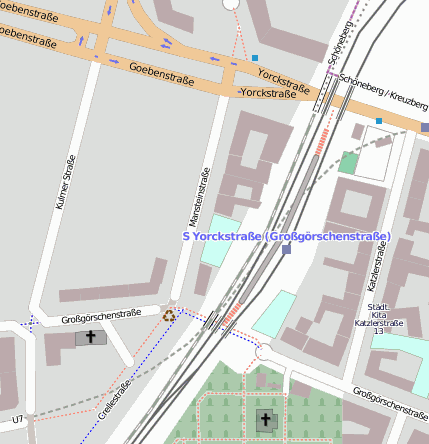Geografische Punkte und Wege aus OpenStreetmap in der Nähe von ``Berlin Yorckstraße/Großgörschenstraße´´