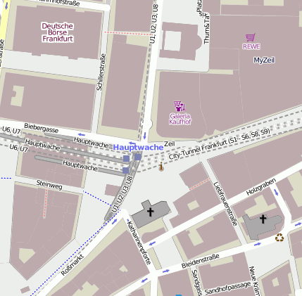 Geografische Punkte und Wege aus OpenStreetmap in der Nähe von ``Frankfurt (Main) Hauptwache´´