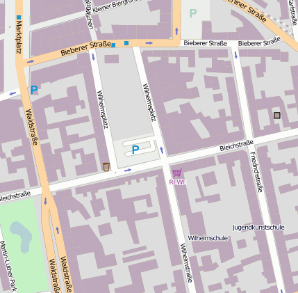Geografische Punkte und Wege aus OpenStreetmap in der Nähe von ``Offenbach Marktplatz´´