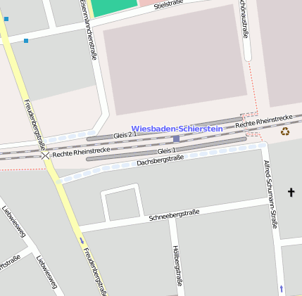 Bahnhofsanlage: Budenheim (2.59km), Wiesbaden West (3.26km), Wiesbaden-Schierstein (0km)