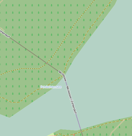 Geografische Punkte und Wege aus OpenStreetmap in der Nähe von ``Schlachtensee´´