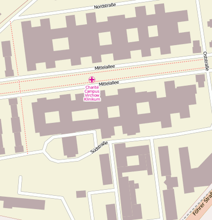 Geografische Punkte und Wege aus OpenStreetmap in der Nähe von ``Charité-Universitätsmedizin Berlin, Campus Virchow-Klinikum´´