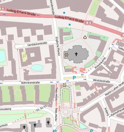 Gebäude: Dreieinigkeitskirche (2.15km), Sankt Katharinen (1.07km), Hamburgische Bürgerschaft (0.93km), Sankt Jacobi (1.49km), Sankt Petri (1.22km), Synagoge mit Gemeindezentrum Hamburg (2.83km), Ruine Nicolaikirche (0.84km), Sankt Michaelis (0km), Hamburger Kunsthalle (1.81km)