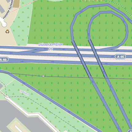 Geografische Punkte und Wege aus OpenStreetmap in der Nähe von ``Kreuz Düsseldorf-Süd´´