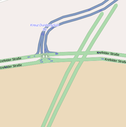 Geografische Punkte und Wege aus OpenStreetmap in der Nähe von ``Kreuz Duisburg-Süd´´