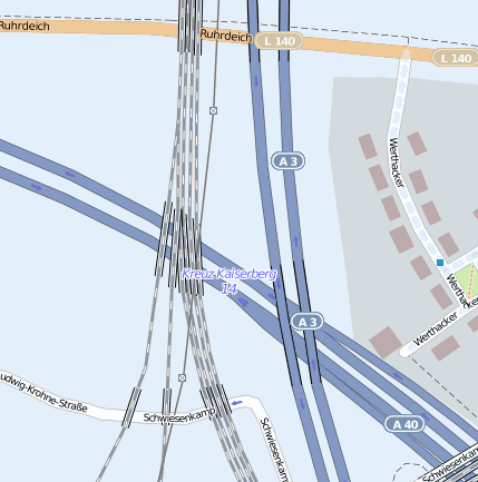 Verkehrsknoten: Duisburg-Ruhrort (2.66km), Duisburg-Kaiserberg (0.83km), Kreuz Duisburg (1.45km), Duisburg-Duissern (2.12km), Duisburg-Zentrum (2.97km), Duisburg-Hochfeld (3.58km)