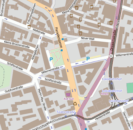 Geografische Punkte und Wege aus OpenStreetmap in der Nähe von ``Affentorplatz´´
