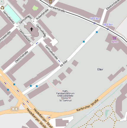 Geografische Punkte und Wege aus OpenStreetmap in der Nähe von ``Alt-Eller´´
