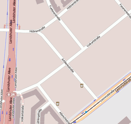 Geografische Punkte und Wege aus OpenStreetmap in der Nähe von ``Artilleriestr.´´