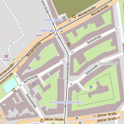 | Gebäude | Johanneskirche, Herz-Jesu-Kirche, Synagoge Zietenstraße Düsseldorf, Bezirksregierung Düsseldorf, Landtag Nordrhein-Westfalen |