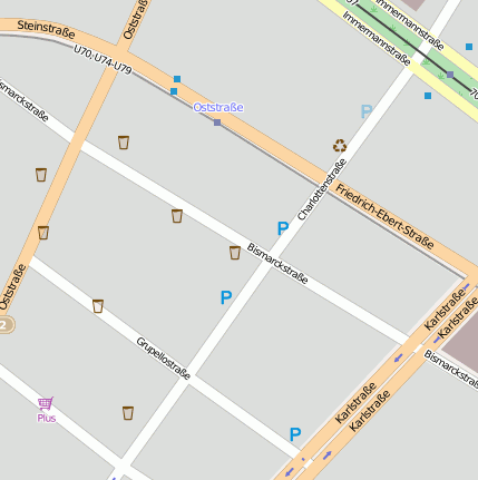 | Aktive Openstreetmap-Karte der Bismarckstr. | |
