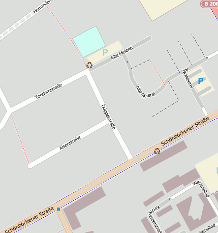 Geografische Punkte und Wege aus OpenStreetmap in der Nähe von ``Düppelstr.´´