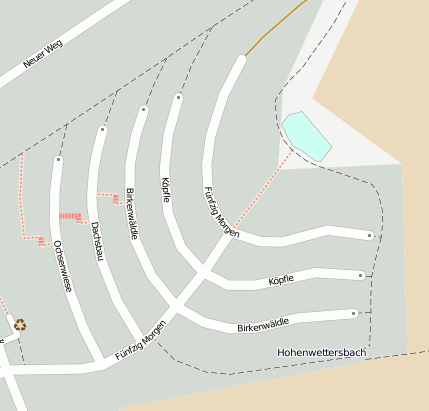 Geografische Punkte und Wege aus OpenStreetmap in der Nähe von ``Fünfzig Morgen´´