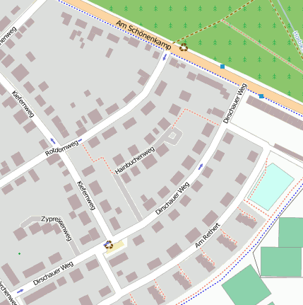 Geografische Punkte und Wege aus OpenStreetmap in der Nähe von ``Hainbuchenweg´´