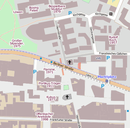 | Bahnhofsanlage | Offenbach (Main) Hbf, Offenbach Marktplatz, Offenbach-Kaiserlei, Offenbach Ledermuseum, Bahnhof Frankfurt-Mainkur |