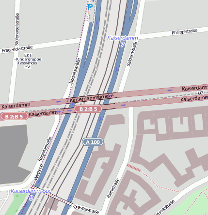 Geografische Punkte und Wege aus OpenStreetmap in der Nähe von ``Kaiserdamm´´