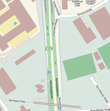 Geografische Punkte und Wege aus OpenStreetmap in der Nähe von ``Kennedydamm´´