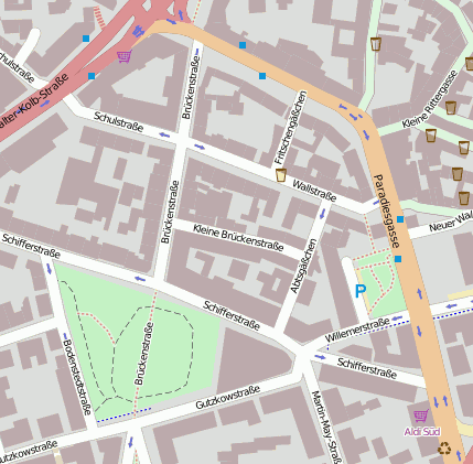 Geografische Punkte und Wege aus OpenStreetmap in der Nähe von ``Kleine Brückenstr.´´