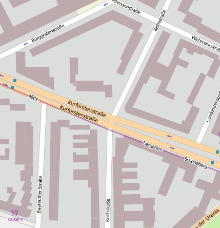 Geografische Punkte und Wege aus OpenStreetmap in der Nähe von ``Kurfürstenstr.´´