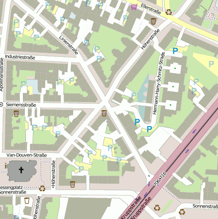 | Gebäude | Universitätsklinikum Düsseldorf, Johanneskirche, Synagoge Zietenstraße Düsseldorf, Bezirksregierung Düsseldorf, Evangelisches Krankenhaus Düsseldorf |