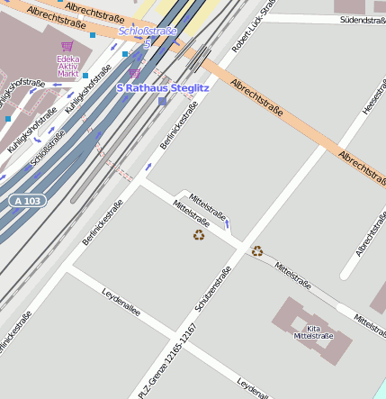 Die Mittelstr. in Berlin verläuft durch die Postleitzahlgebiete: 12165, 12167. Der nächstgelegene Ortsteil ist Steglitz.