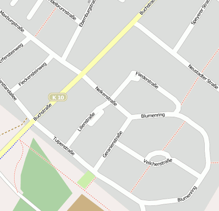 Geografische Punkte und Wege aus OpenStreetmap in der Nähe von ``Nelkenstr.´´