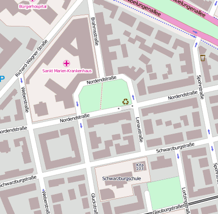 Geografische Punkte und Wege aus OpenStreetmap in der Nähe von ``Nordendstr.´´