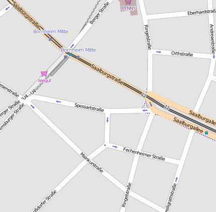 Geografische Punkte und Wege aus OpenStreetmap in der Nähe von ``Spessartstr.´´