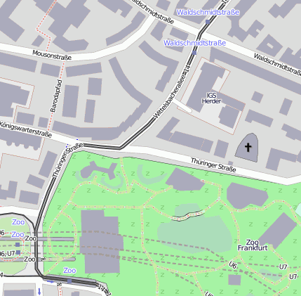 Geografische Punkte und Wege aus OpenStreetmap in der Nähe von ``Thüringer Str.´´