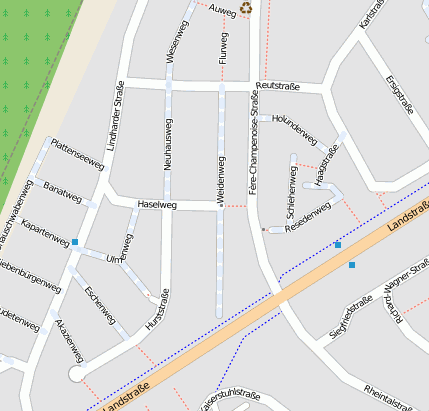Geografische Punkte und Wege aus OpenStreetmap in der Nähe von ``Weidenweg´´